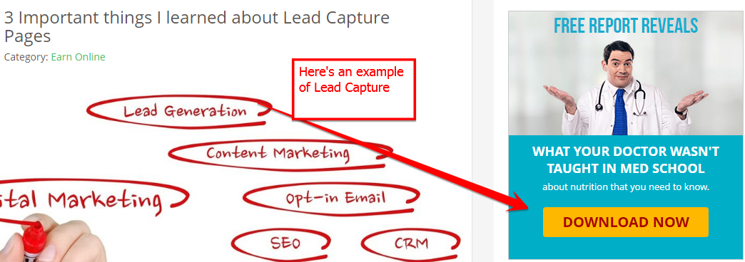 One of the aspects, I decided to include was “Lead Generation” marketing. I came to learn that I could use Lead Capture pages on popular topics that would have a place for a person visiting to sign up for what was being offered.